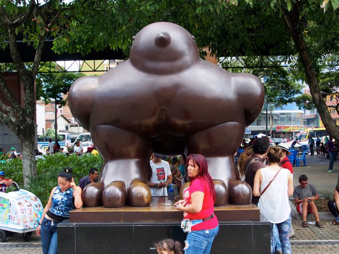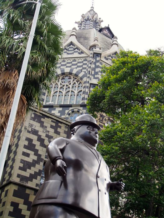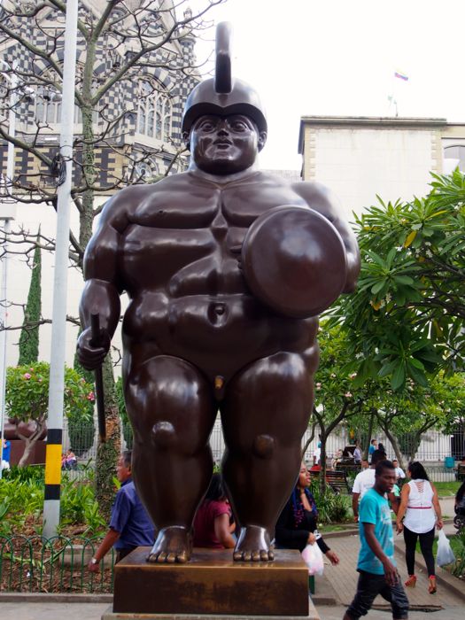 Botero Plaza, filled with 23 sculptures donated by Fernandon Botero in 2004 as part of the nearby museum’s renovation. Botero doesn’t believe he has ever sculpted or painted a fat person, but that his “…exaggerations of volume and size area a glorification of sensuality and life.”