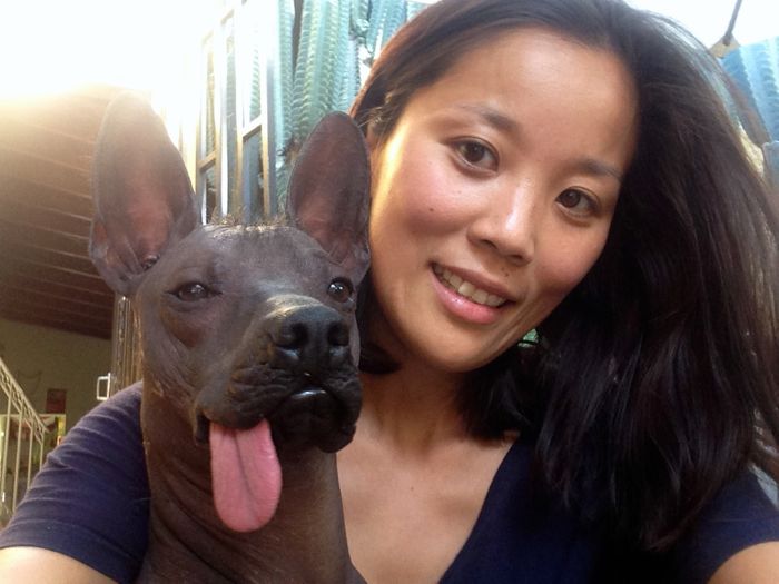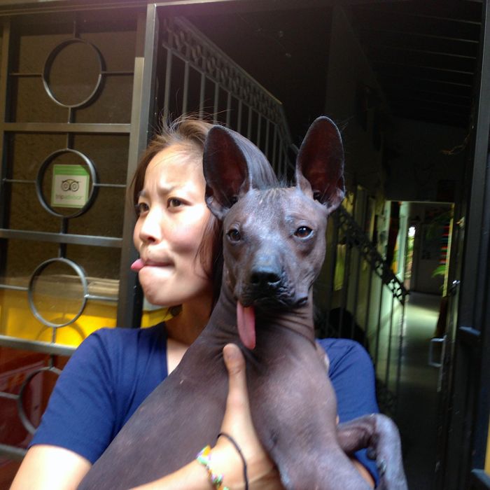 This is Petit Doobie and yes that is how his tongue is planted always. He is a Peruvian hound temporarily adopted by the Frenchmen who owned our hotel. Seriously, his tongue stays like that. Look…